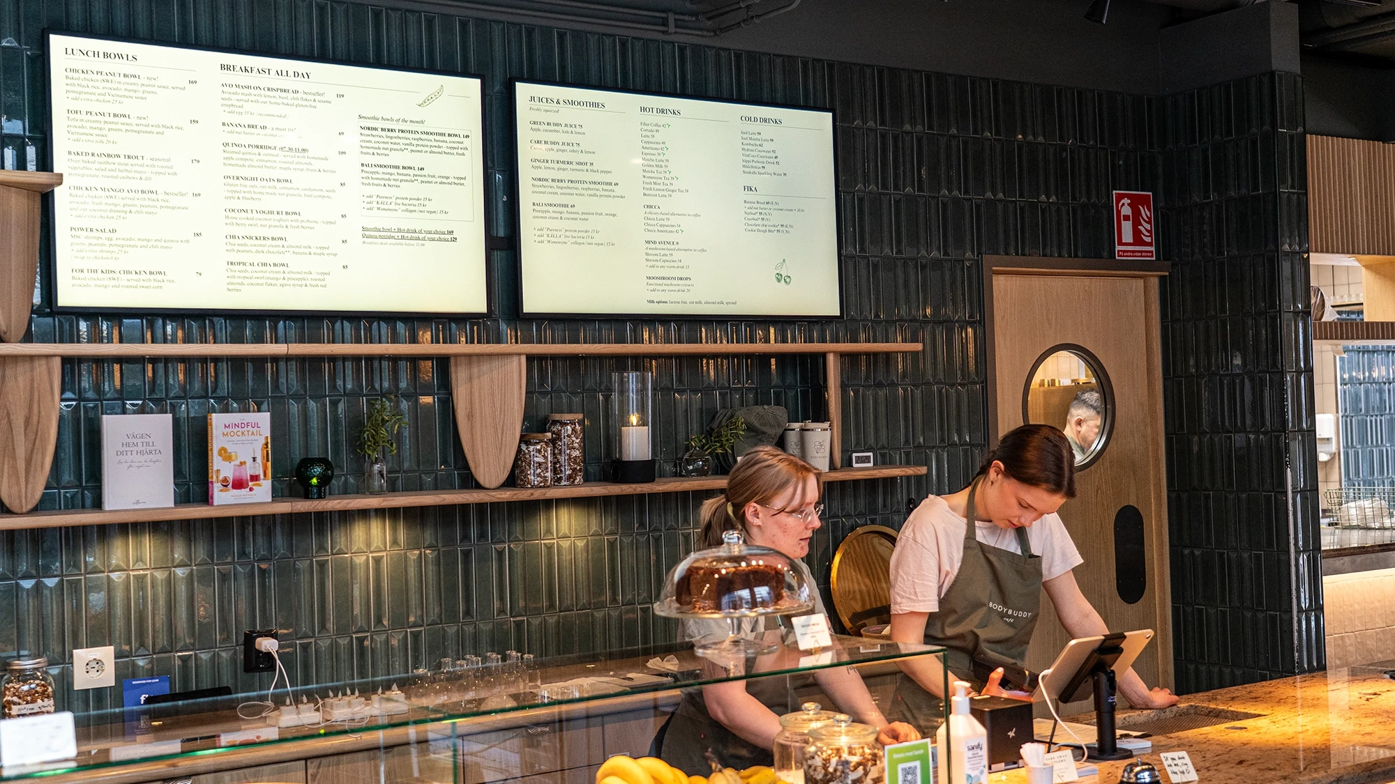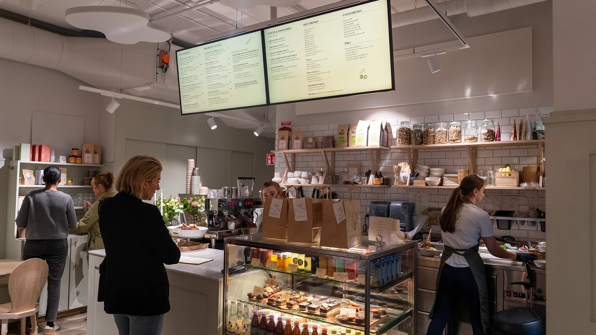 In the café they wanted screens and content that reflected their brand, namely screens which would primarily be used to showcase their menus. They have three locations throughout Stockholm so the project involved advising them on content and teaching them the software.