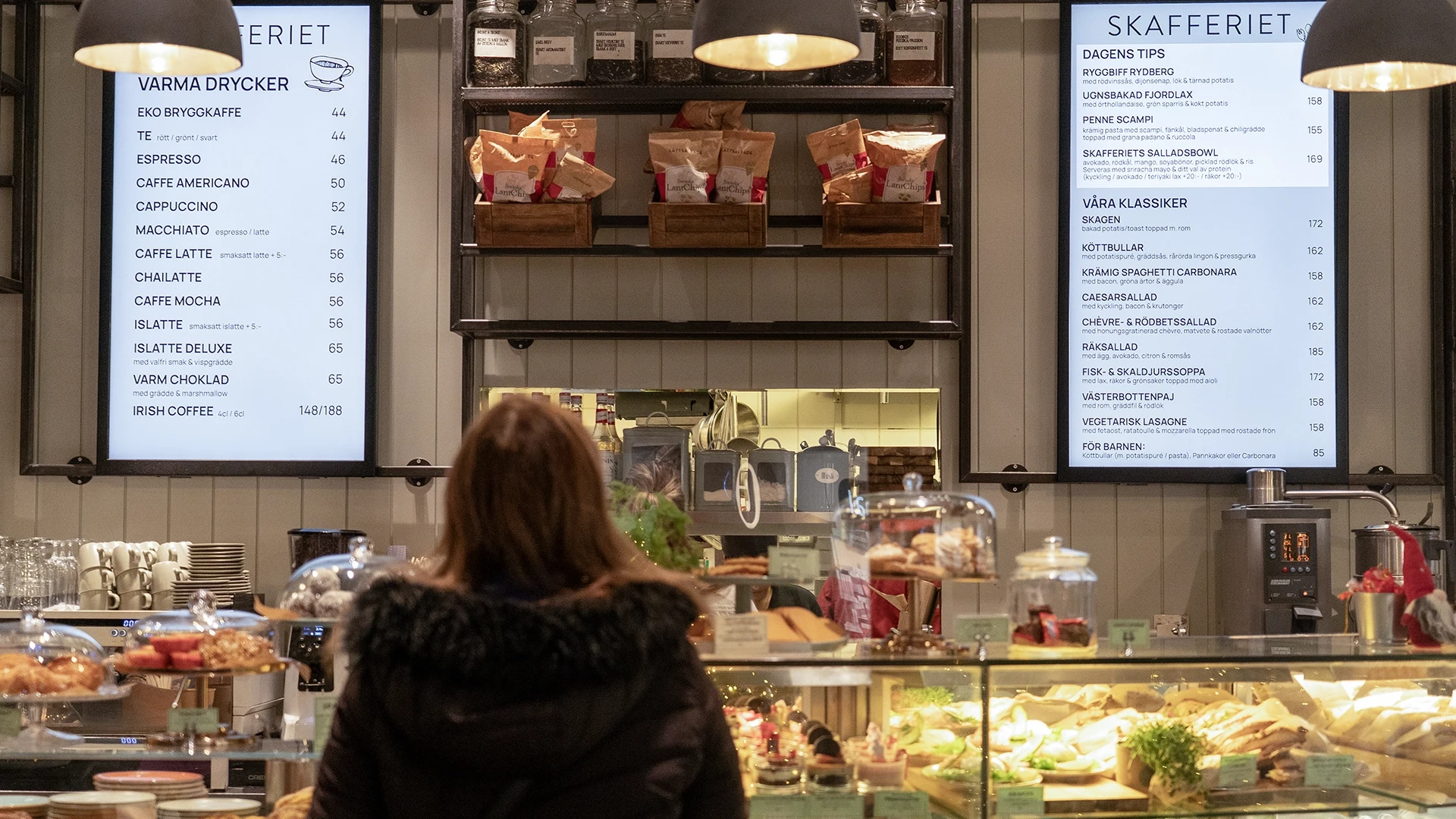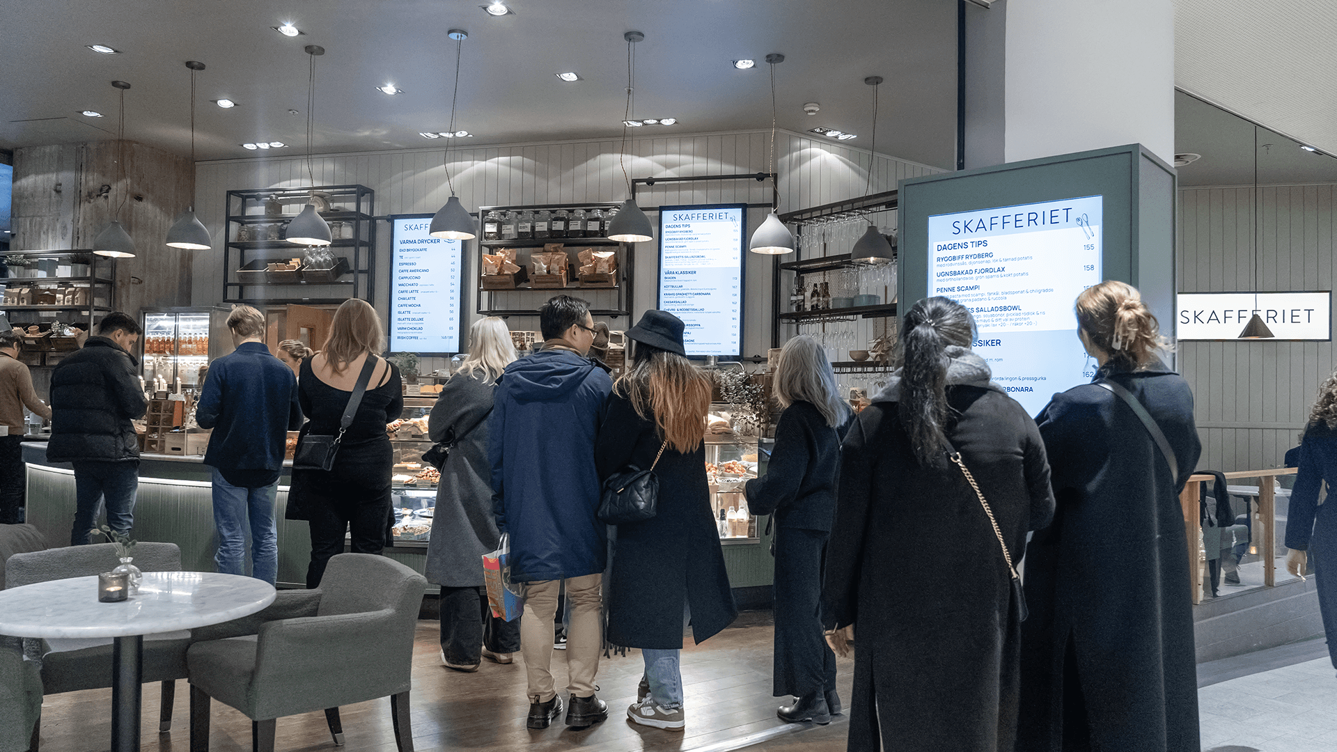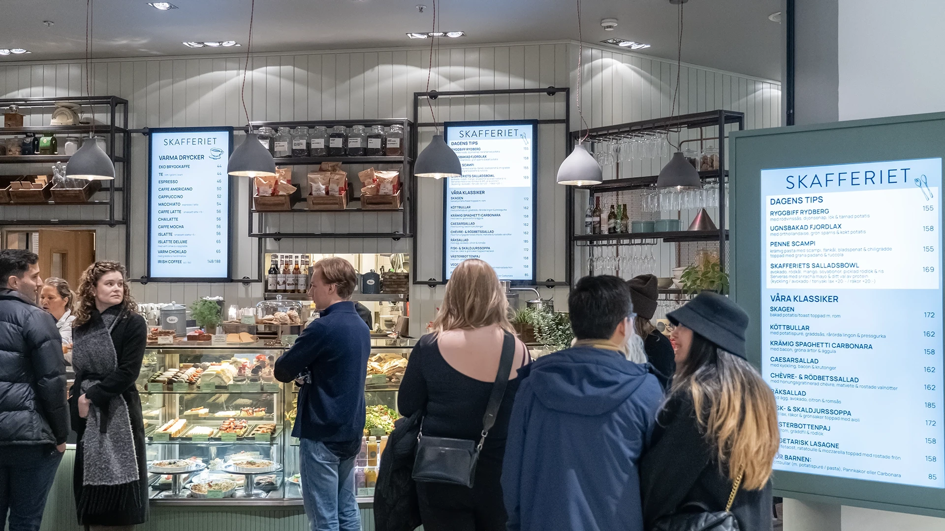 Skafferiet is located just inside the entrance of the Galleria so the screens compliment its high-traffic footfall. They have simple screens, no flashy designs needed, and it just works! You can find them here.